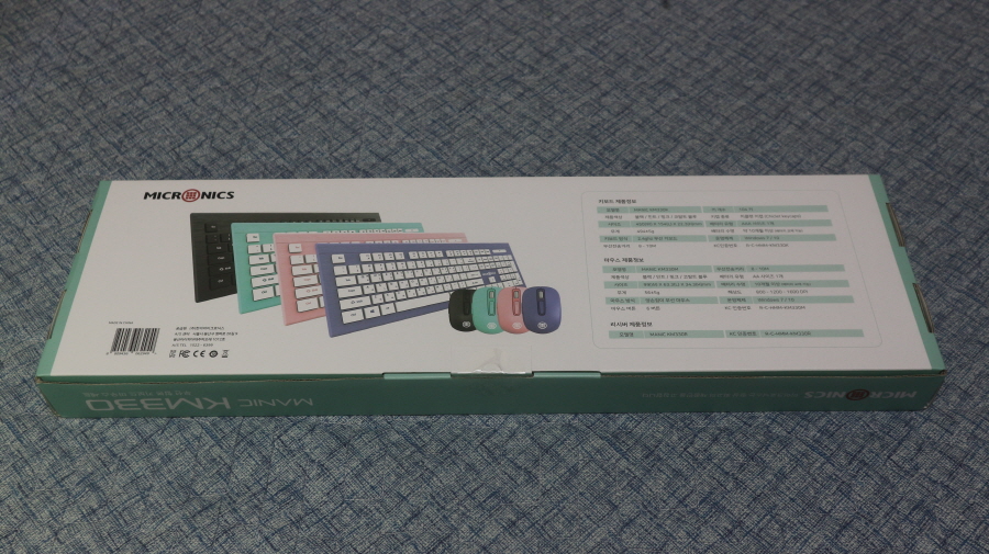 마이크로닉스 MANIC KM330 무선 슬림 키보드 마우스 합본 박스 후면 사진입니다.