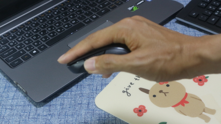 크기는 약간 작은 느낌입니다. 마우스 클릭감은 약간 하드한 느낌이 있습니다.