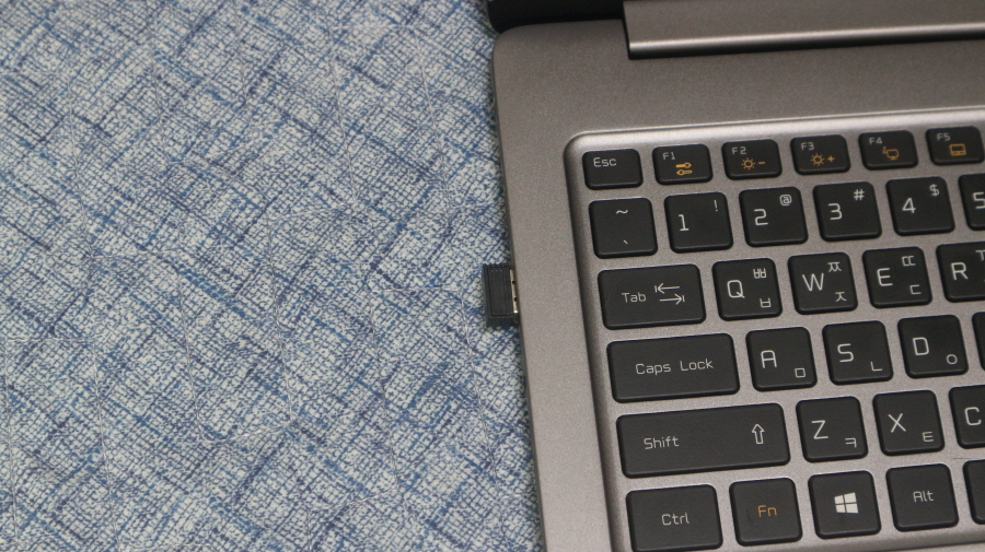 마이크로닉스 MANIC KM330 무선 슬림 키보드 마우스 합본 리시버를 노트북에 연결했습니다.