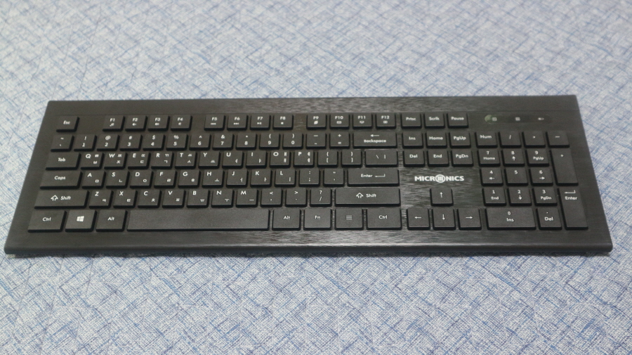 마이크로닉스 MANIC KM330 무선 슬림 키보드 마우스 합본 키보드 상단에는 배터리 LED가 있어 배터리 부족을 바로 확인할 수 있습니다.