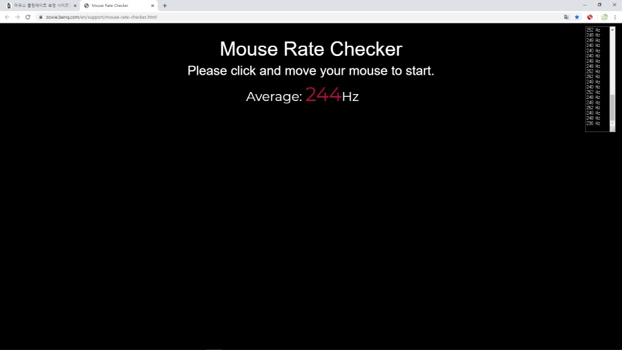 마이크로닉스 MANIC KM330 무선 슬림 키보드 마우스 합본 마우스 폴링 레이트 측정 사진입니다.
